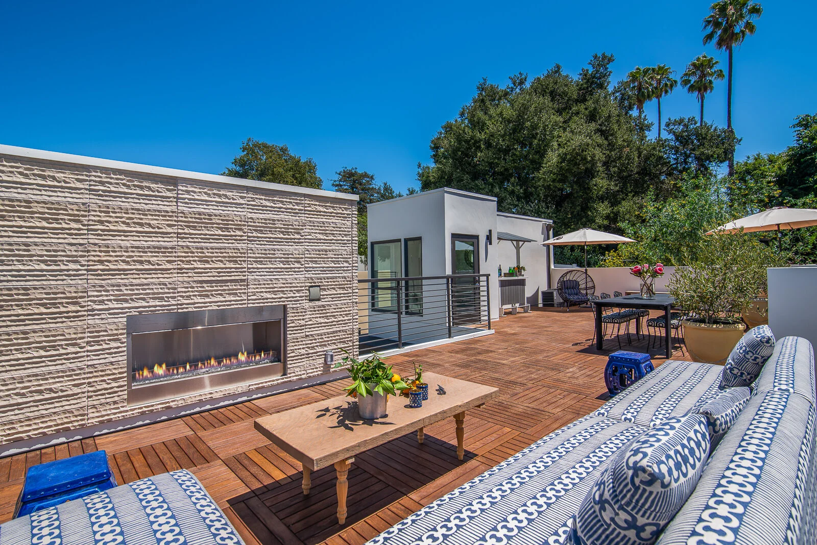 Romantic Mediterranean charm & crisp lines merge beautifully in the Silverlake Hills with views stretching from the Hollywood sign to the Griffith Observatory and a field of dreams below. Flooded with light, a grand living room with a gas fireplace opens to a balcony overlooking scenic vistas, whilst a beautifully crafted chef’s kitchen comes equipped with custom cabinets, a stone counter and high-end appliances.